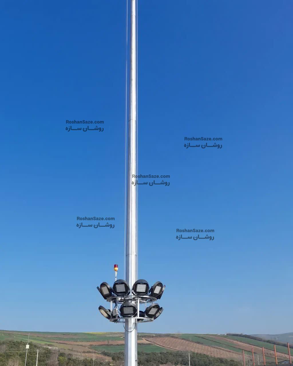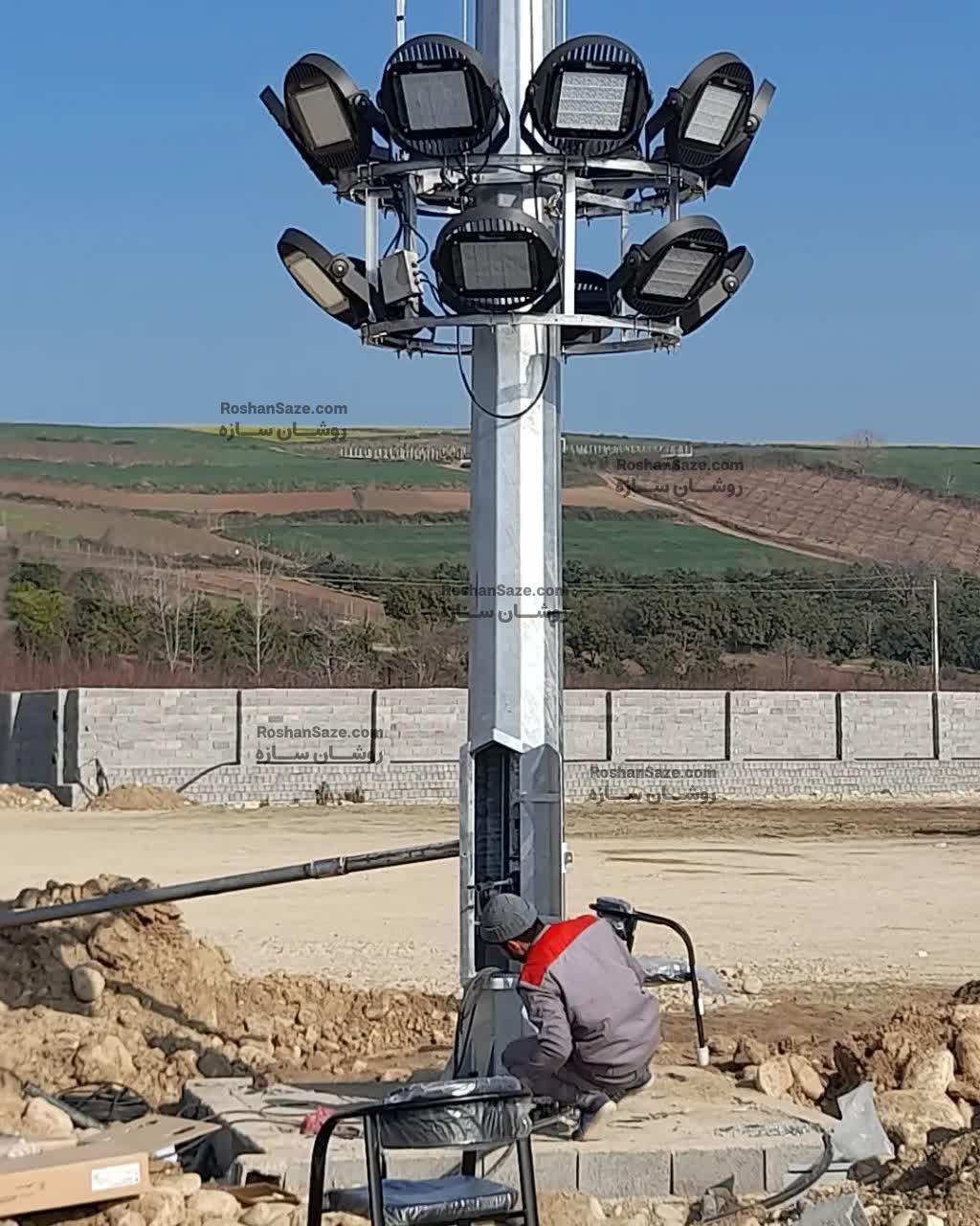 پروژه برج نور (روشنایی) 15 متری با سبد متحرک دوطبقه با فنداسیون بتنی درجا به سفارش پیمانکار، توسط گروه مهندسی روشان سازه، طراحی، تولید و اجرا شده است.