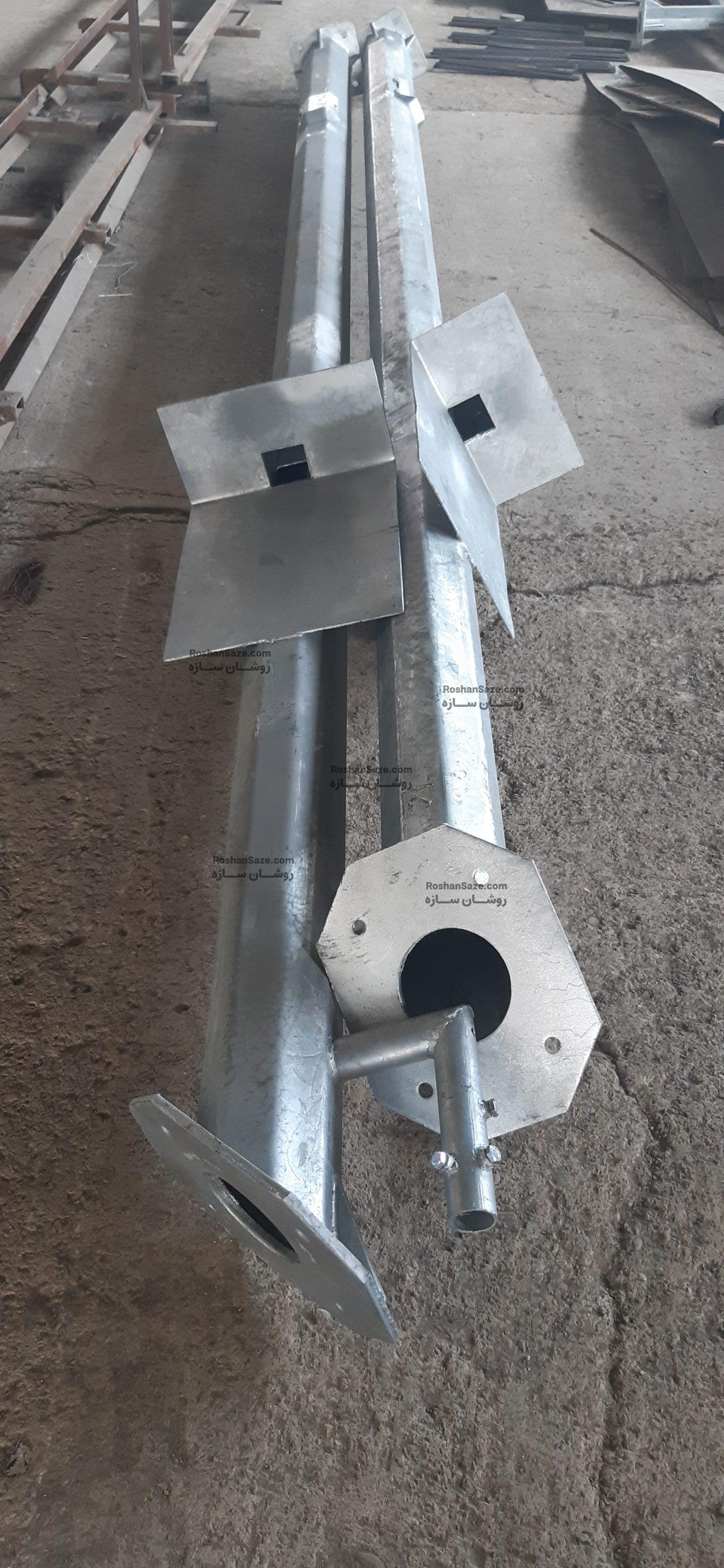 دکل دوربین 6 متری با مقطع هشت ضلعی با دستک یکطرفه دوربین ثابت در بازه طولی 2 تا 5 متر جنس ورق از فولاد ST37 بیس پلیت از ورق فولادی درجه یک